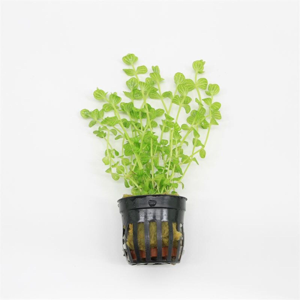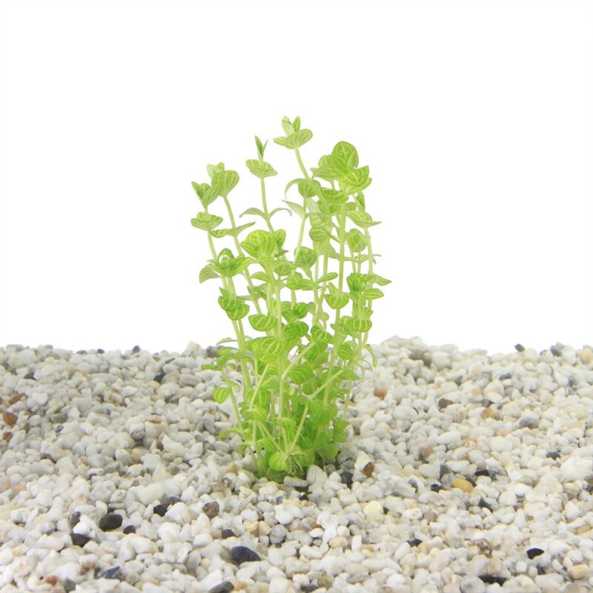 Lindernia rotundifolia 'Variegated' is een opvallende aquariumplant met lichtgroene bladeren voorzien van subtiele, crèmekleurige nerven of randjes. Deze bonte variëteit van Lindernia rotundifolia groeit rechtop en behoudt zijn compacte vorm bij voldoende licht. Door de zachte kleurschakeringen geeft deze plant een speels en licht accent aan het midden of de achtergrond van het aquarium. De plant is makkelijk in onderhoud en groeit ook goed zonder CO₂.