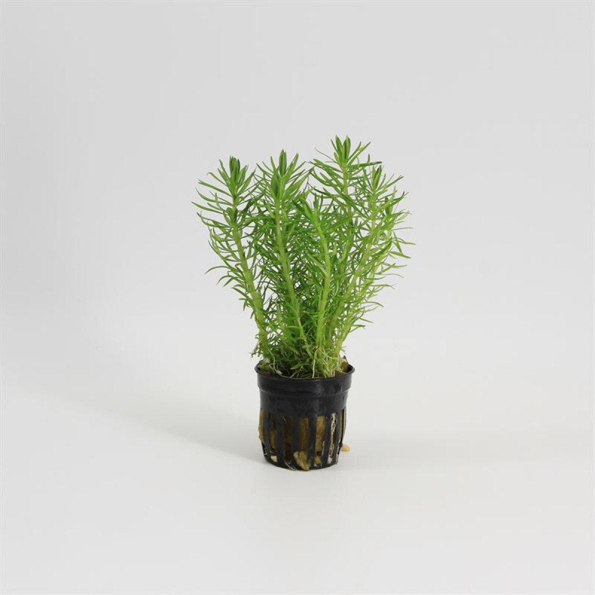 Pogostemon Erectus is een opvallende, zuilvormige stengelplant met naaldachtige bladeren die helder lichtgroen kleuren. De plant groeit compact en recht omhoog, waardoor hij perfect is voor strakke layouts en aquascapes waarin structuur en verticale lijnen belangrijk zijn. Door de dichte bladgroei is P. erectus ook zeer geschikt als achtergrondplant of als groen accent tussen rode soorten. Bij voldoende licht en CO₂ groeit hij snel en behoudt hij zijn frisse kleur en compacte vorm.