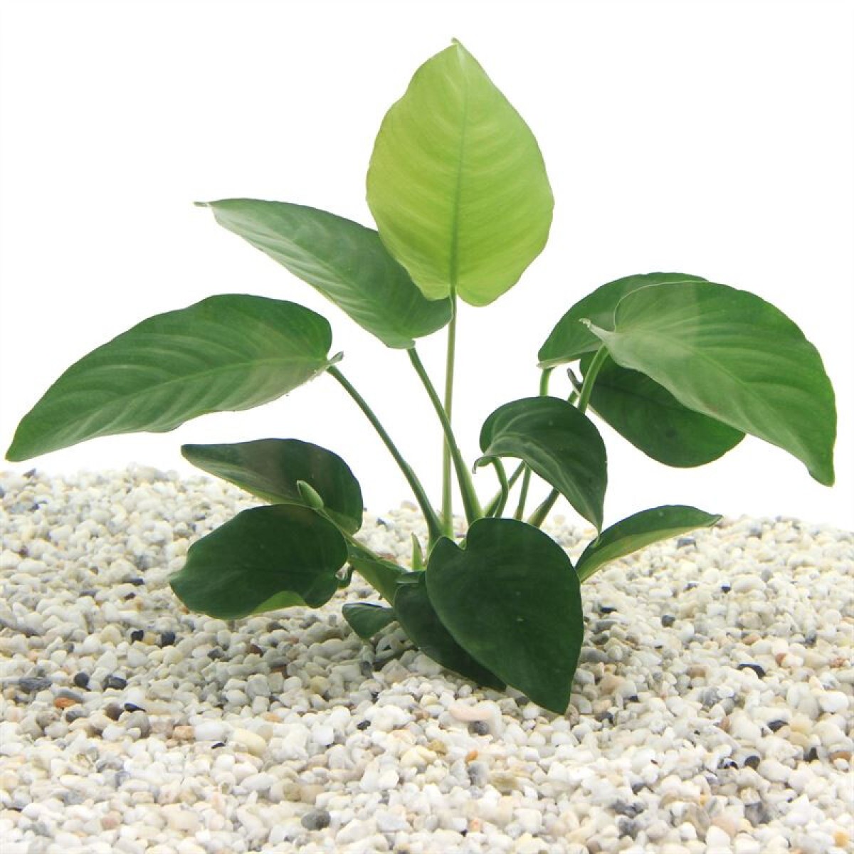 Anubias barteri is een grotere variant met bredere bladeren en een rustige, krachtige uitstraling. Ideaal voor het midden van het aquarium of als accent op decoratiemateriaal. Deze langzaam groeiende plant is weinig eisend en kan uitstekend tegen lagere lichtintensiteit. Door zijn sterke bladeren is deze ook tegen planteneters opgewassen. Let op bij het poten, de wortels nooit in de bodem drukken, hiermee verstik je de plant. Altijd op hout/steen binden of plakken zodat de wortels vrij blijven en de plant deze zelf kan laten groeien.